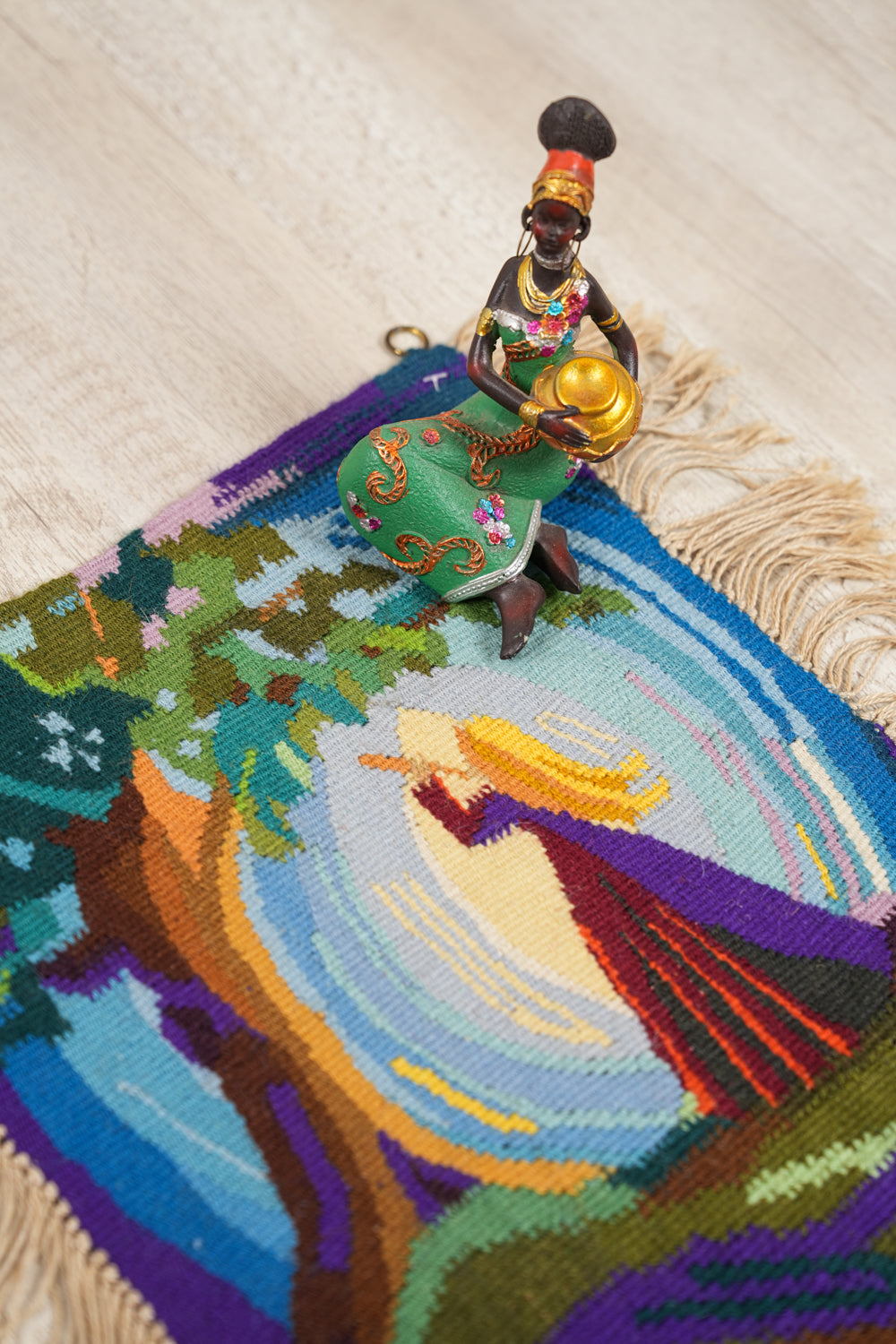 This is a woollen vintage Swedish Flemish tapestry kilim, full of vibrant colour and poetic expression.